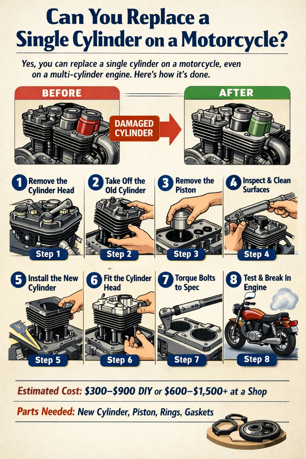 - 1 ¿Se puede reemplazar un solo cilindro en una motocicleta?