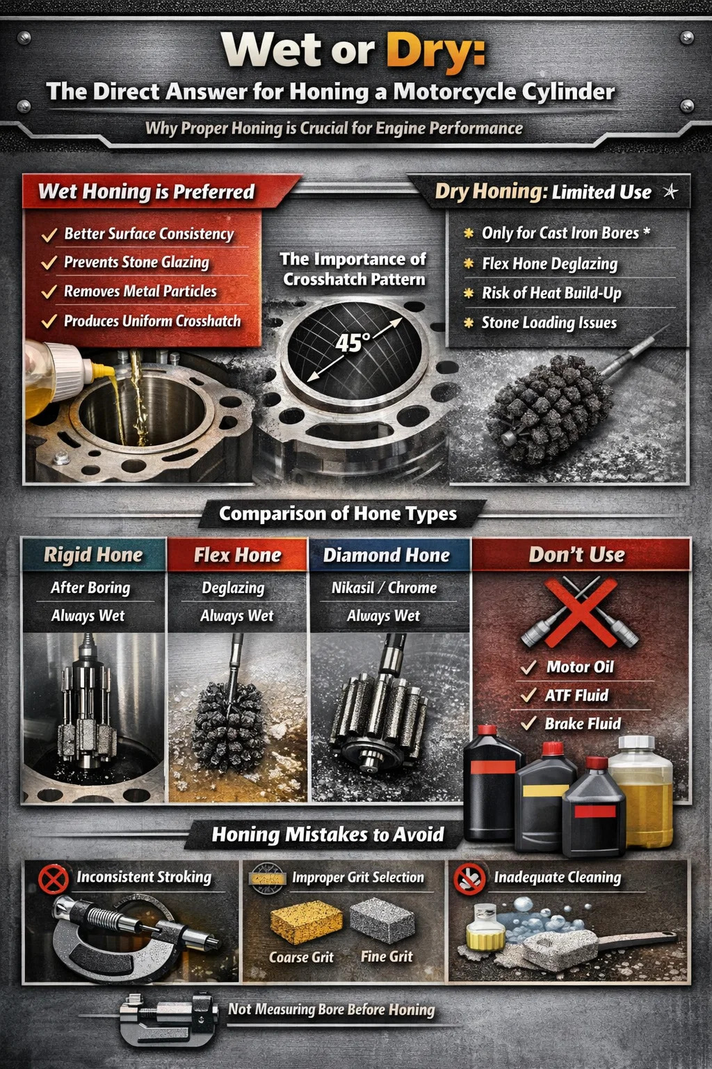 Por qué el bruñido húmedo supera al bruñido seco para cilindros de motocicletas