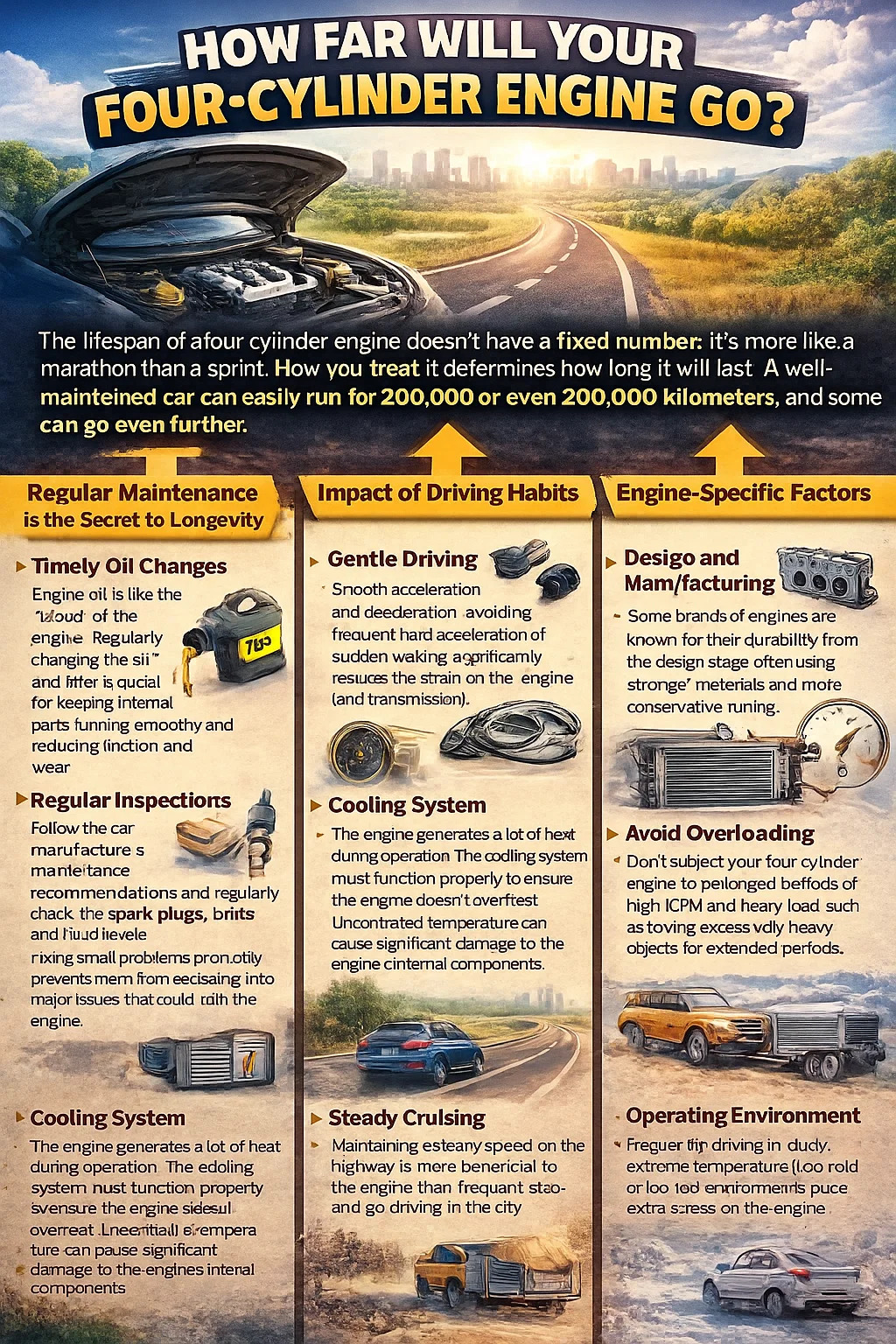 Estos son los factores clave que afectan hasta dónde llegará su motor de 4 cilindros: