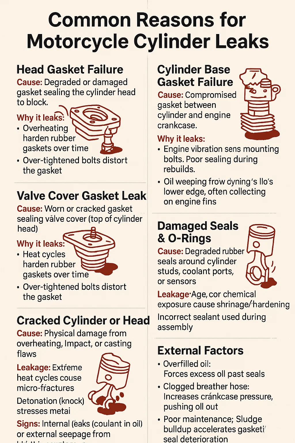 Estas son las razones comunes de cilindro de motocicleta fugas: